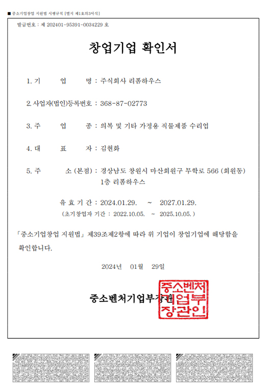 - 주식회사 리폼하우스 법인설립