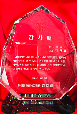 - 마산장애인복지관 우수후원자상 수상