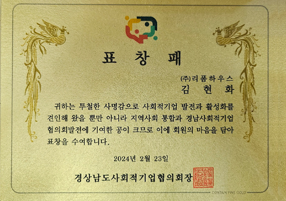 - 경상남도 사회적기업 협의회 회장상 수상